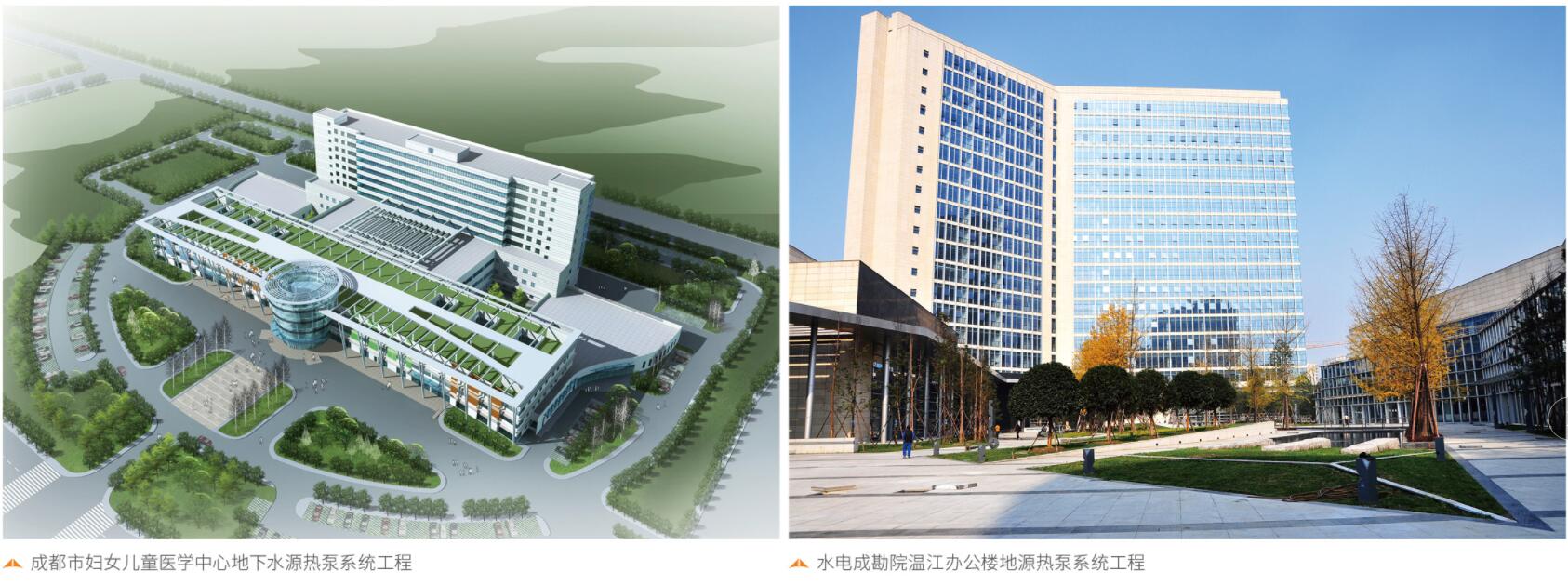 先后完成了元瑞國際家居商城、水電成勘院溫江辦公大樓、摩爾國際汽配廣場、成都市婦女兒童醫學中心、四川地質醫院等30多項地源熱泵系統工程,在淺層地溫能調查、評價和地源熱泵系統勘察、設計、施工方面具有豐富經驗和突出優勢。