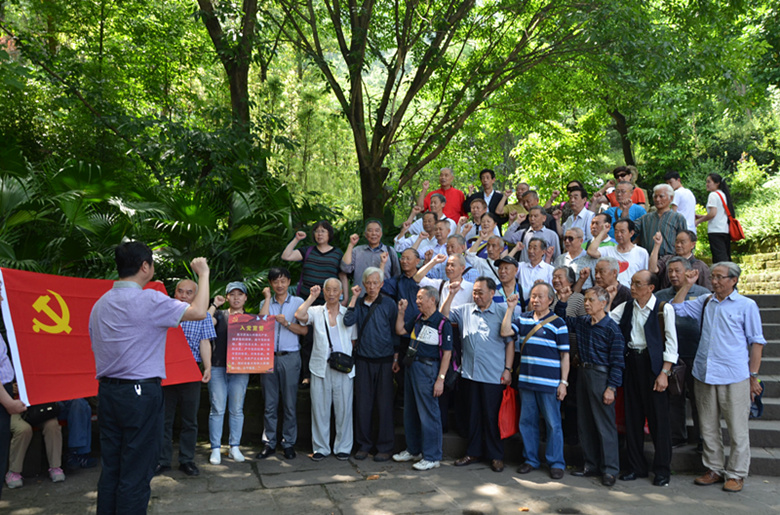 在白公館,離退休黨員面對(duì)鮮紅的黨旗,高舉右手,莊嚴(yán)地重溫入黨誓詞,字句鏗鏘,表達(dá)了全體黨員堅(jiān)定共產(chǎn)主義理想,雖然離開了工作崗位,仍然支持單位發(fā)展,擁護(hù)國(guó)家改革發(fā)展,堅(jiān)定黨的發(fā)展信念。