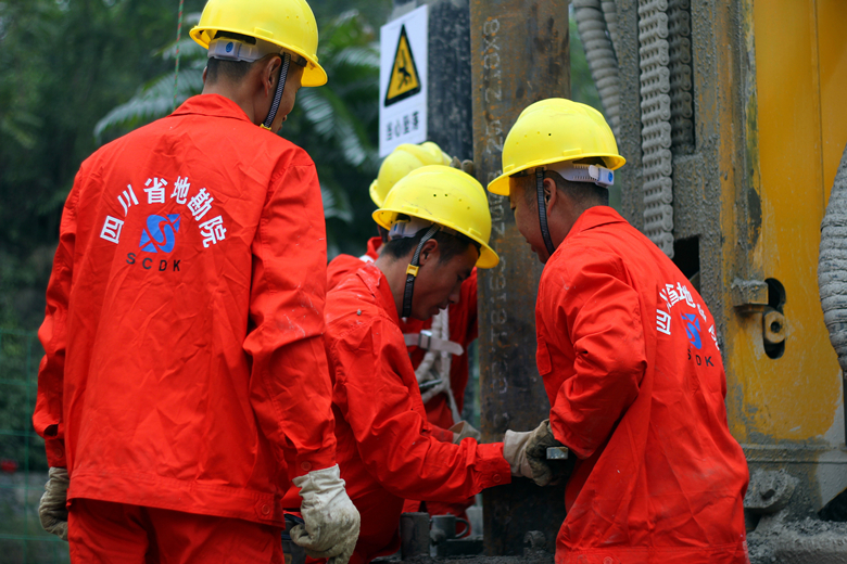 為了高質量、高水平、按期圓滿完成所擔負的科研任務,我院組建了技術實力強勁的科研、施工隊伍,并力求在多項技術研究、施工工藝、儀器配備上提升科技含量,取得進一步的創新突破。在技術研究方面,從院屬水文地質工程公司抽調一批長期從事水文地質工作、已經積累了豐富經驗的中青年技術骨干擔綱,老專家進行指導。他們著眼于國際國內同行業最新研究成果,充分運用最近幾年在四川石化煉廠開展地下水監測所取得的實踐經驗,在對整個示范區6534平方公里內頁巖氣井場的水文地質條件進行詳細調查的基礎上,結合采氣井與回注井建設運行特征,針對巖溶地下水敏感地區、紅層砂泥巖缺水地區等不同的地下水類型區、地下水環境保護目標等因素,反復分析研究,篩選出3個典型井場作為地下水監測示范平臺,順利完成了第一階段的環境水文地質勘查及監測井布置、成井參數設計方案。在監測井施工方面,他們著眼于環境保護,著眼于推廣應用由省級地勘單位發展能力提升專項資金購買的XFS-600履帶式多功能水井鉆機(全液壓潛孔錘鉆進鉆機),配套高壓清洗機及世界領先技術的美國壽力空氣壓縮機,按照安全文明工地標準組織施工,同時與傳統回旋鉆機、CZ系列沖擊鉆機進行大氣揚塵污染程度、場地泥漿污染程度、施工進度、施工成本等對比研究,為今后更加廣泛使用先進設備、環保工藝,以及節能減排、降耗增效提供基礎資料。在監測儀器配備方面,他們著眼于引進國際上性能穩定、參數較多、性價比最優的在線監測儀器,研究使用太陽能裝置作為監測儀器動力,使用互聯網作為單位及管理研究人員專門接收終端,在整個體系中完全實現地下水水質的實時跟蹤監測。