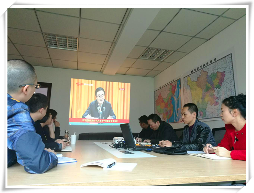 11月8日,學習貫徹黨的十九大精神中央宣講團報告會在成都舉行,地質礦產公司黨支部組織在家黨員同志通過網絡直播集體觀看報告會。