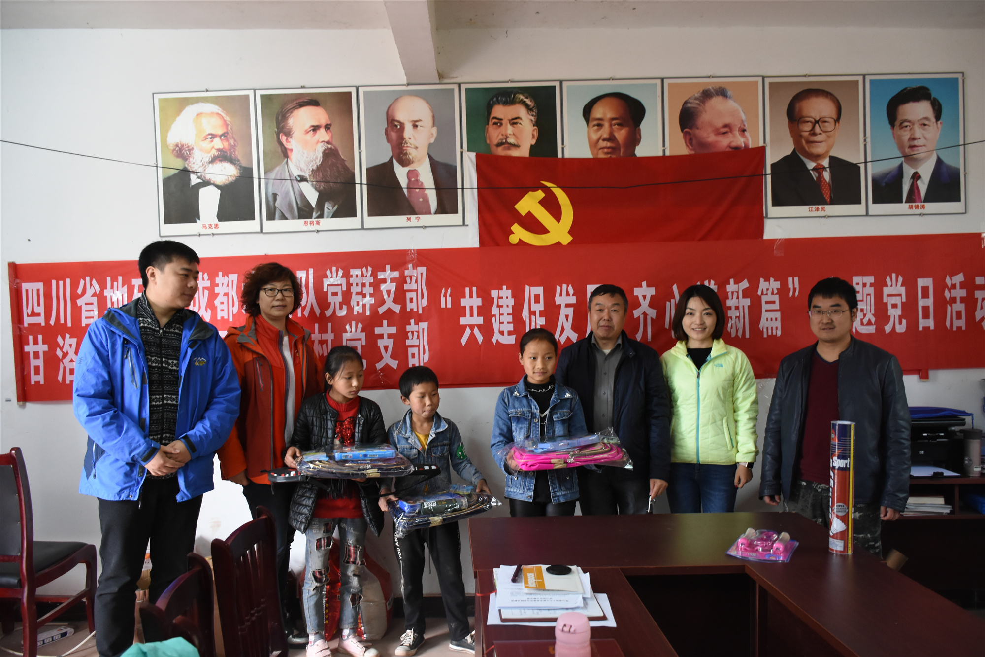 11月15日-16日,為切實加強基層黨組織建設,助推幫扶地打好脫貧攻堅戰,成都水文隊黨委書記謝大軍一行到對口幫扶的甘洛縣田壩鎮玉門口村開展“四川省地礦局成都水文隊黨群支部與甘洛縣田壩鎮玉門口村黨支部 共建促發展 齊心譜新篇”主題黨日活動。政工部主任、隊黨群支部書記李彥婷,財務部主任朱敬萍,市場部主任黃磊參加活動。