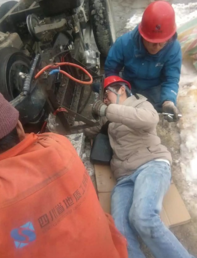 項目經理馬天華立即召開緊急會議,討論解決方案。由于項目工地距離縣城較遠,近距離的鄉鎮又沒有維修條件,無論是重新購置設備,還是前往縣城維修設備或者請維修師傅前來,都至少要耽誤一周的工期。為確保項目順利開工,項目部成員馬天華、唐爽、李博等人討論決定,對已壞的三輪車進行拆解,取下能用的柴油機及零件組裝到同一臺三輪車上。他們通過網上查閱資料,電話咨詢等,克服了工地現場零件缺失、材料不足的困難,在冰天雪地中完成了組裝任務,最終使其中一輛三輪車實現運轉,可以勝任硐內的棄渣轉運工作。