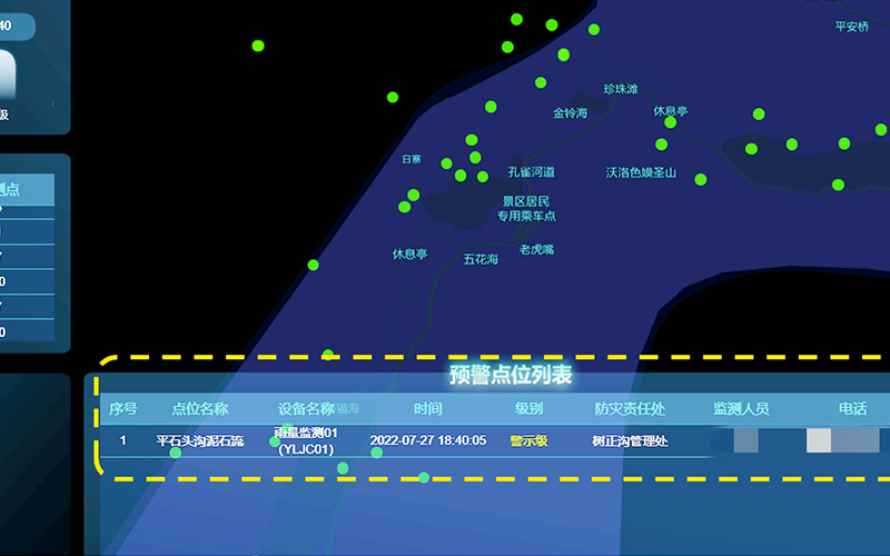 2022年7月27日18時40分許,川勘集團承建的九寨溝景區(qū)地質(zhì)災害監(jiān)測預警平臺顯示的平石頭溝泥石流“警示級”預警信息立刻引起了現(xiàn)場值班人員李強的警覺。監(jiān)測數(shù)據(jù)顯示:該泥石流區(qū)域發(fā)生了短時強降雨,15分鐘降雨量為10.4mm,已達“警示級”,泥位監(jiān)測01#數(shù)據(jù)變化值達0.28m,與平臺報警信息較一致。